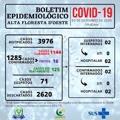 O boletim epidemiológico desta quarta-feira (30), divulgado pela SEMSAU (Secretaria Municipal de Saúde), confirmou mais 24 casos de COVID-19 no município.