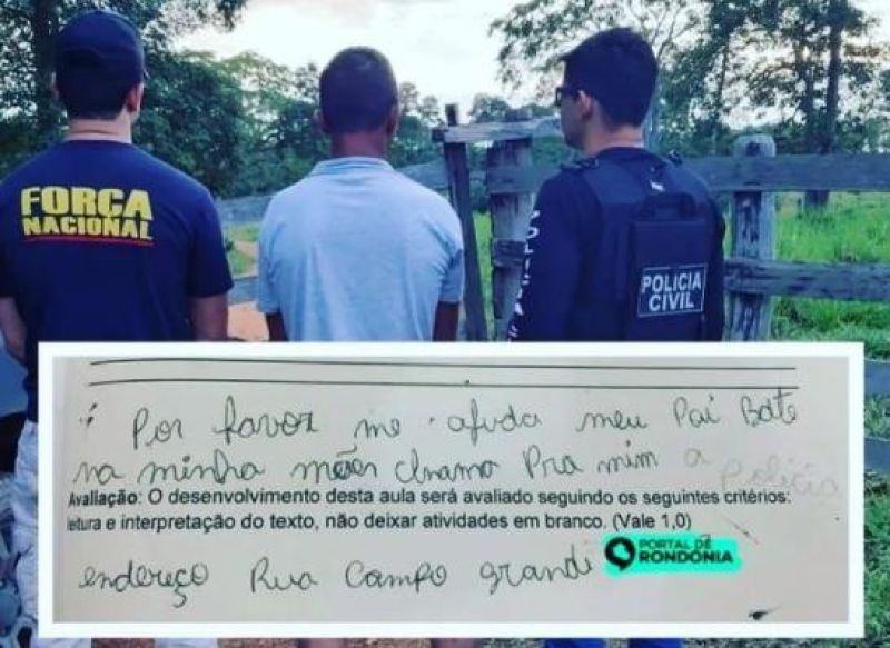 O pedido de socorro foi visto pela professora e chegou até o delegado André Kondageski, titular da 1ª Delegacia de Machadinho D´Oeste, há 50 quilômetros da escola.