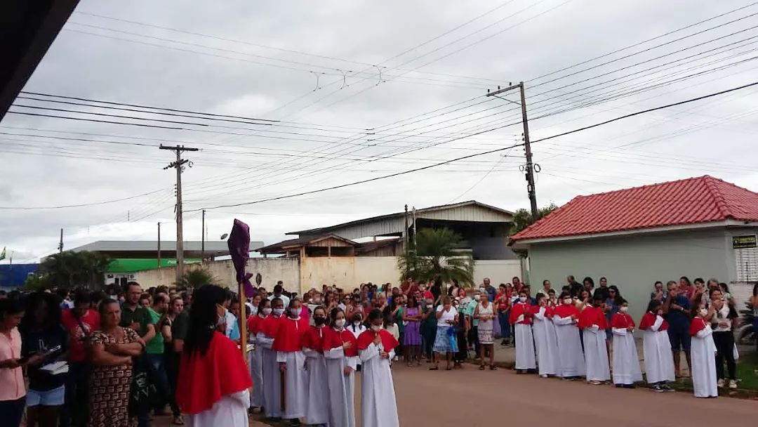 Nesta Sexta-feira Santa, os fiéis paroquianos se reuniram em frente ao Colégio Eurídice Lopes Pedroso para a Meditação da Via Sacra, que neste ano foi feita percorrendo as ruas e avenidas da cidade. A última estação foi meditada em frente à Comunidade N. Sra. da Penha, após a Via Sacra ocorreu o ato litúrgico.