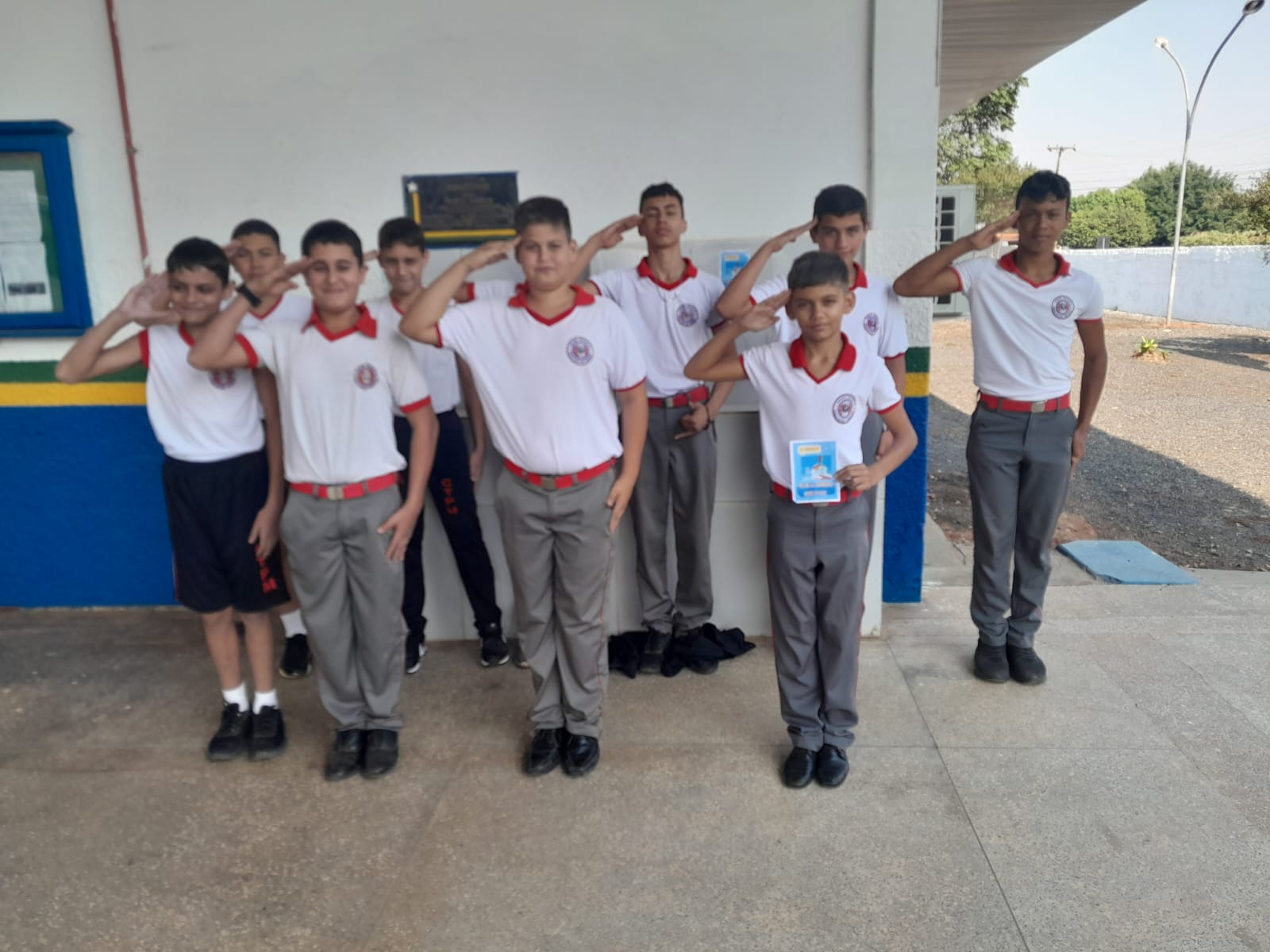Os alunos são do 8° ano A da professora Tatiane Simão, período da manhã, que participaram de uma redação e a aluna Geovana foi escolhida como ganhadora com a melhor redação com o tema.